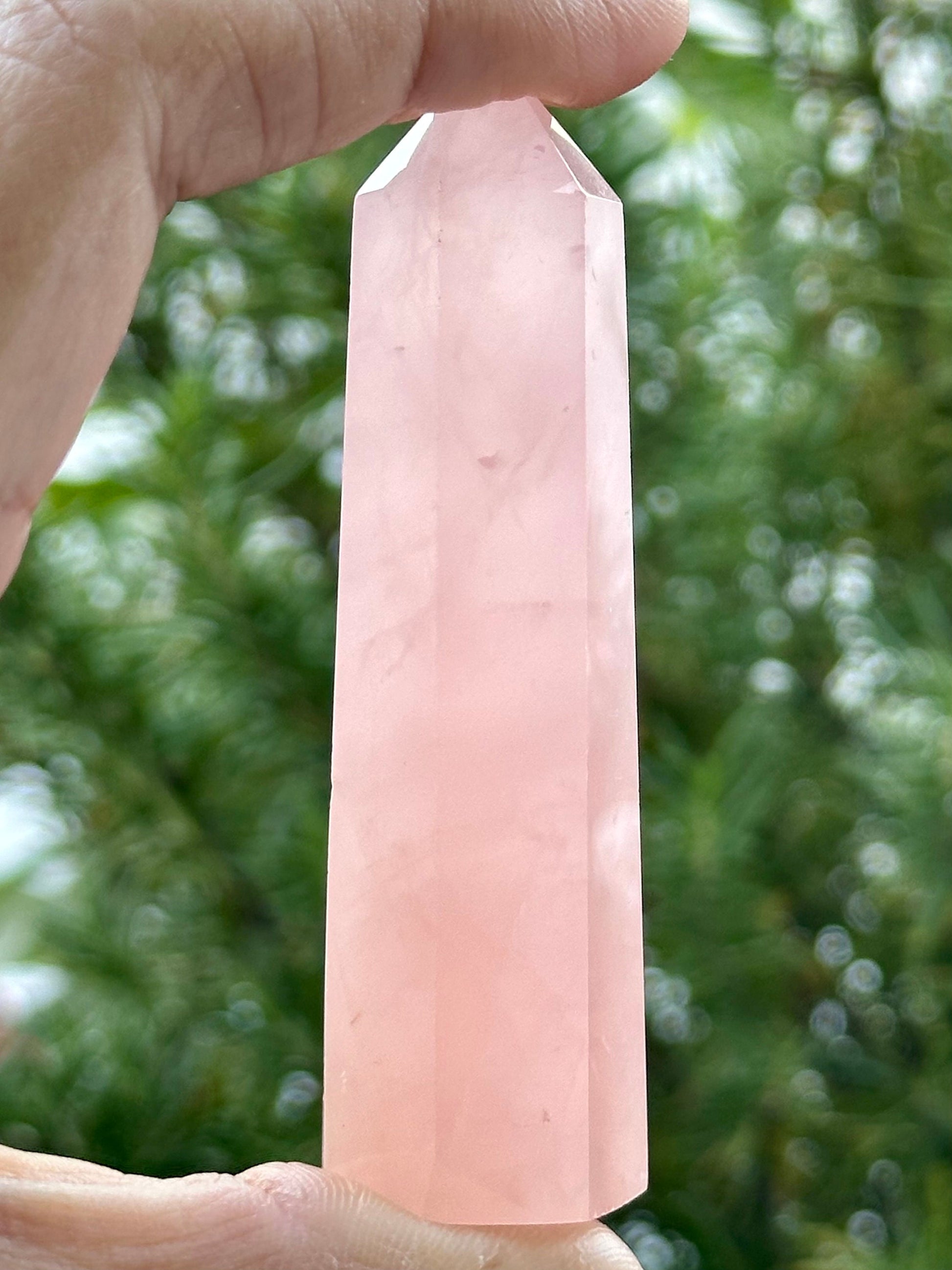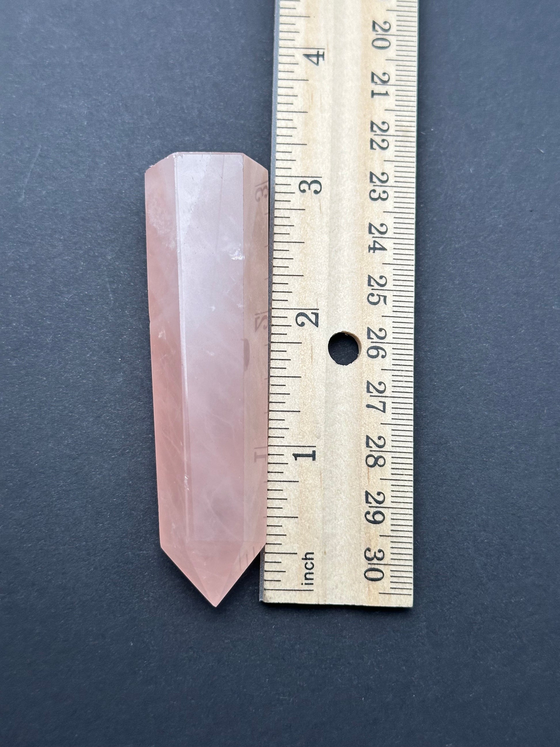 3 inch Gorgeous Rose Quartz Tower from Madagascar. 0.86"x3"x0.77", 2oz.