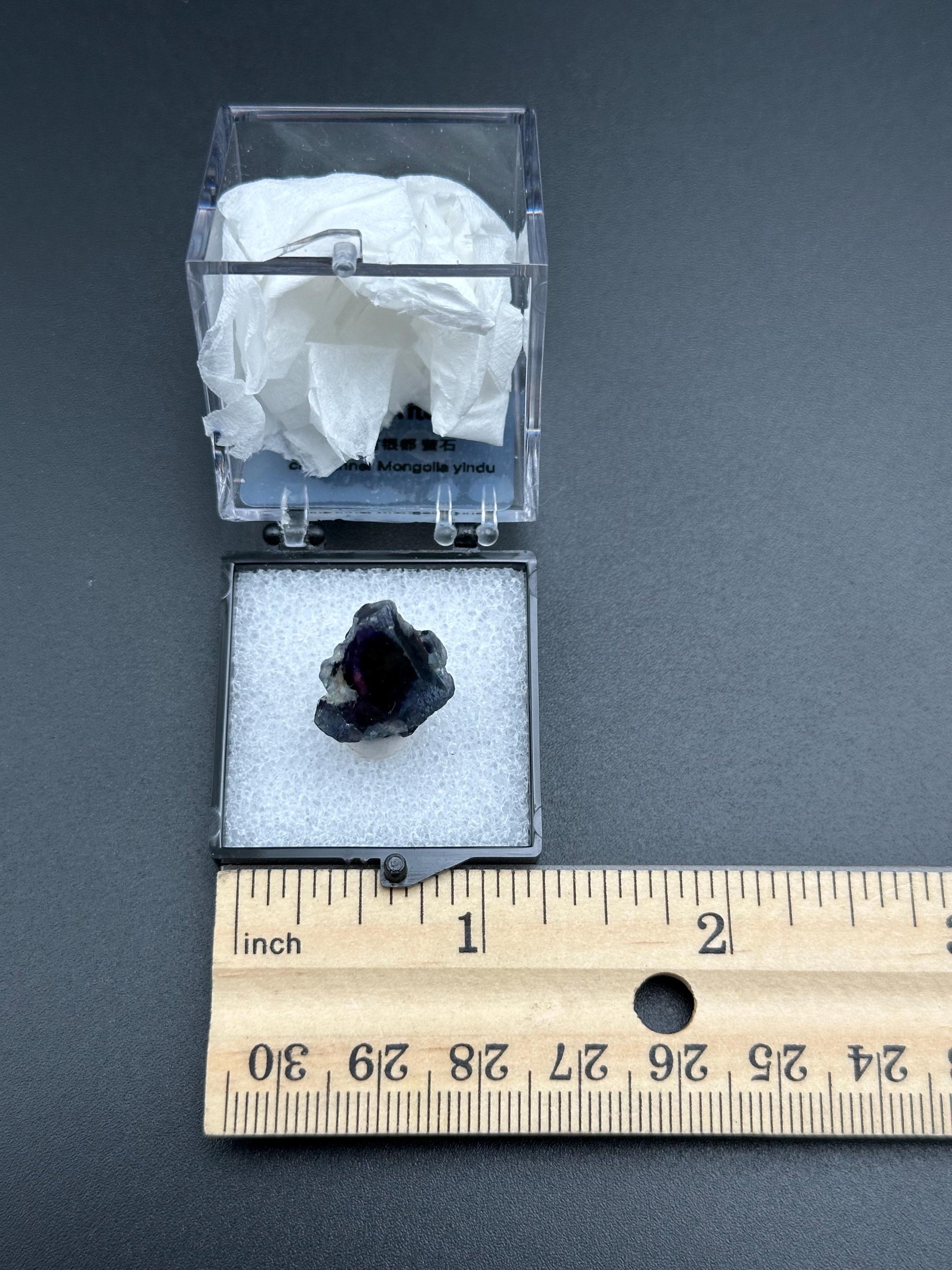 Beautiful Small Fluorite Specimen, in a perky box, from the Yindu Mine in Inner Mongolia, China. 14.9mmx15.6mmx13.5mm, 3.49g