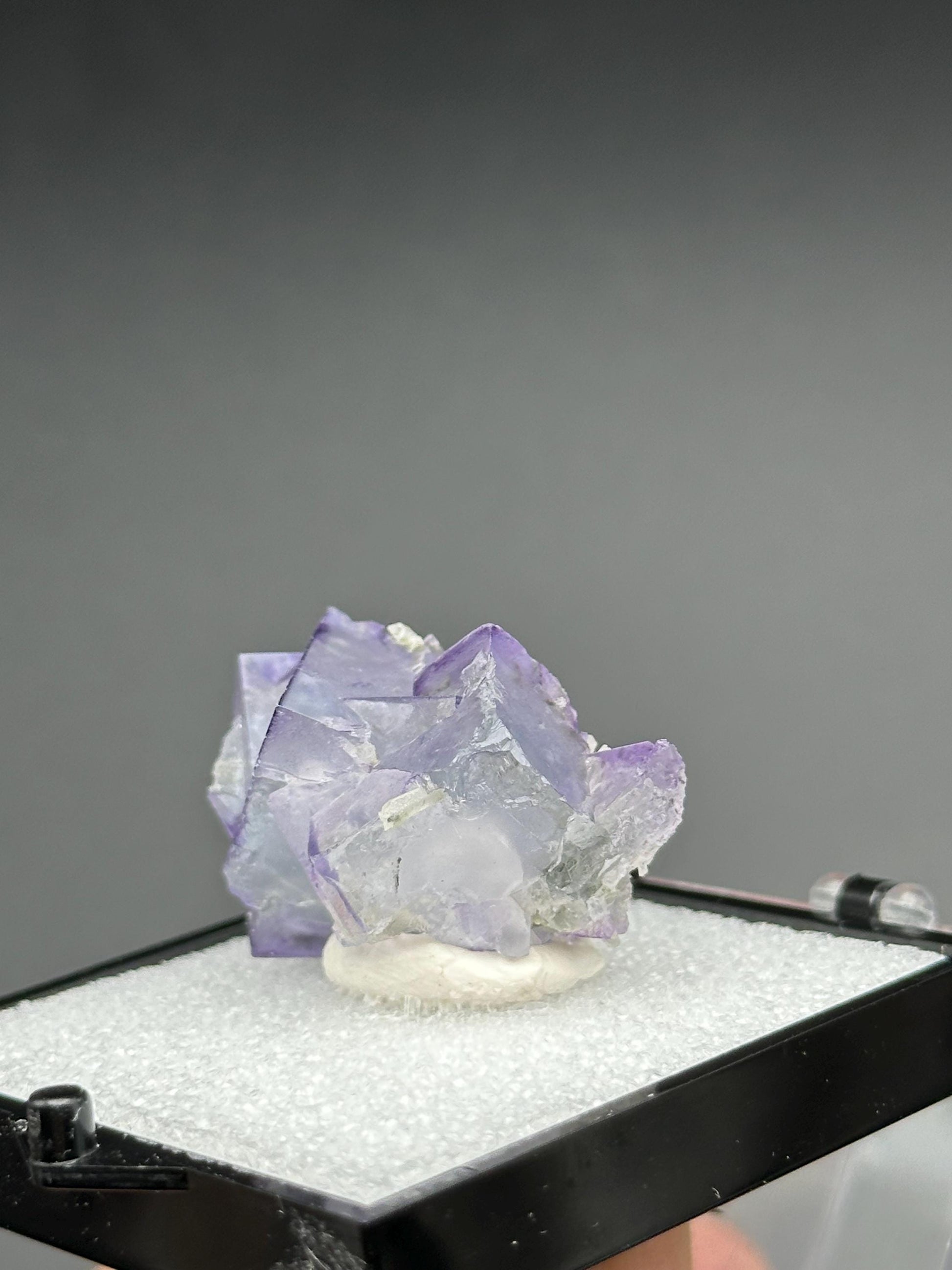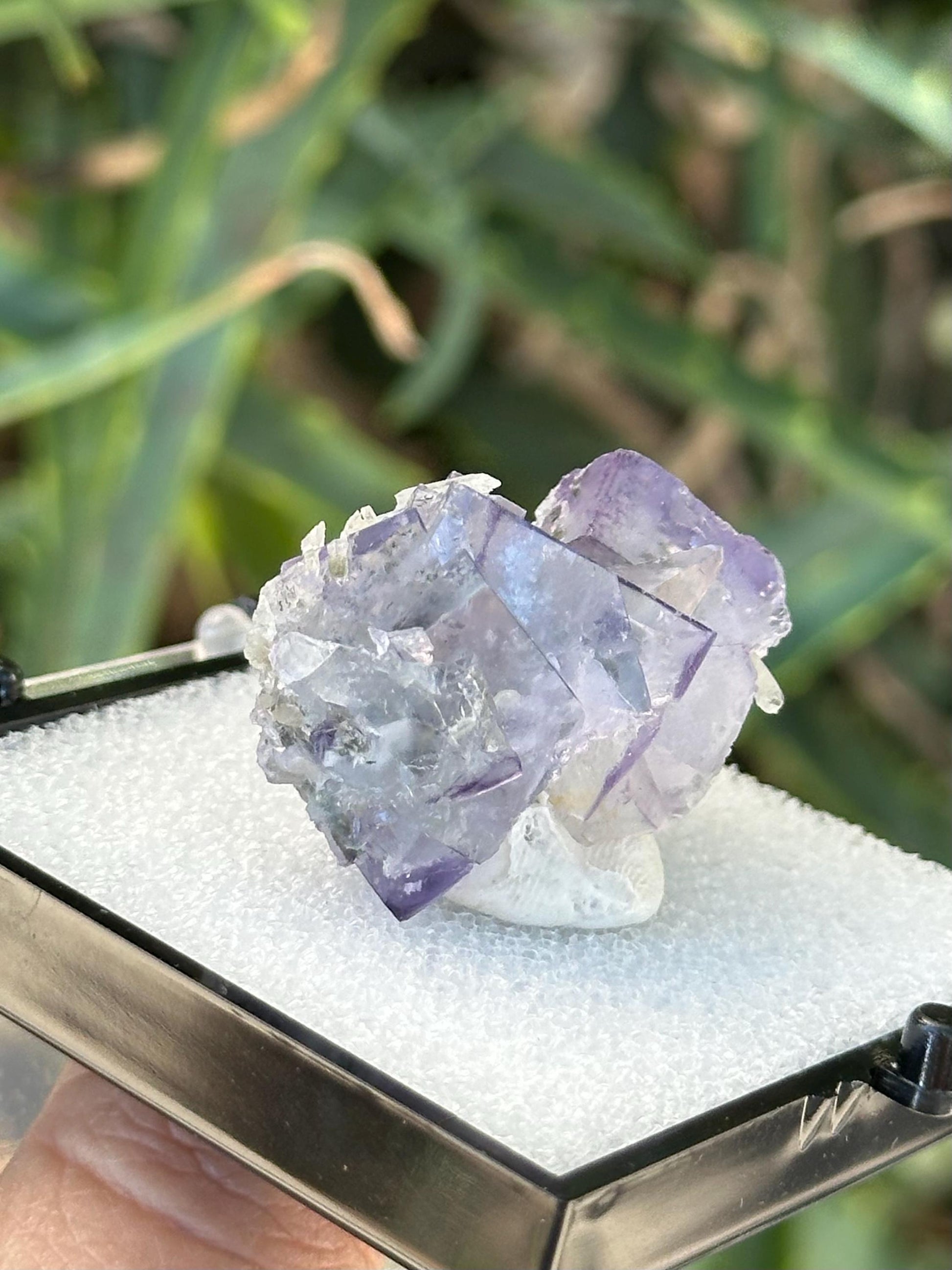Beautiful YGX Fluorite with Quartz Specimen in a perky box from the Yaogangxian Mine, Hunan, China. uv reactive.