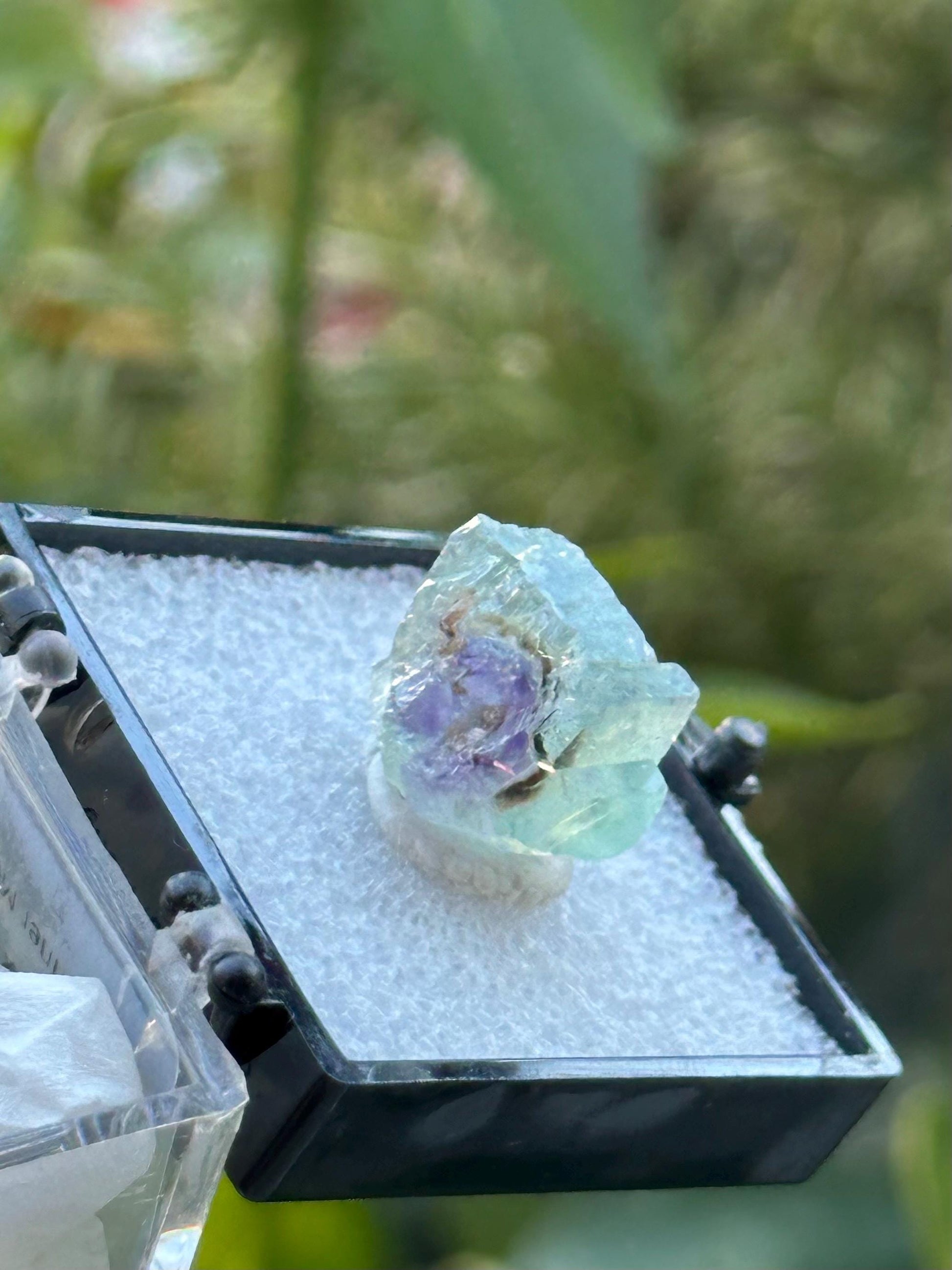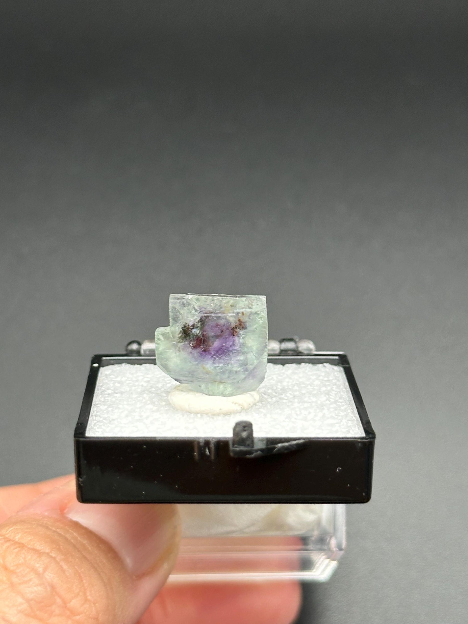 Lovely Small Fluorite Specimen, in a perky box, from the Yindu Mine in Inner Mongolia, China.
