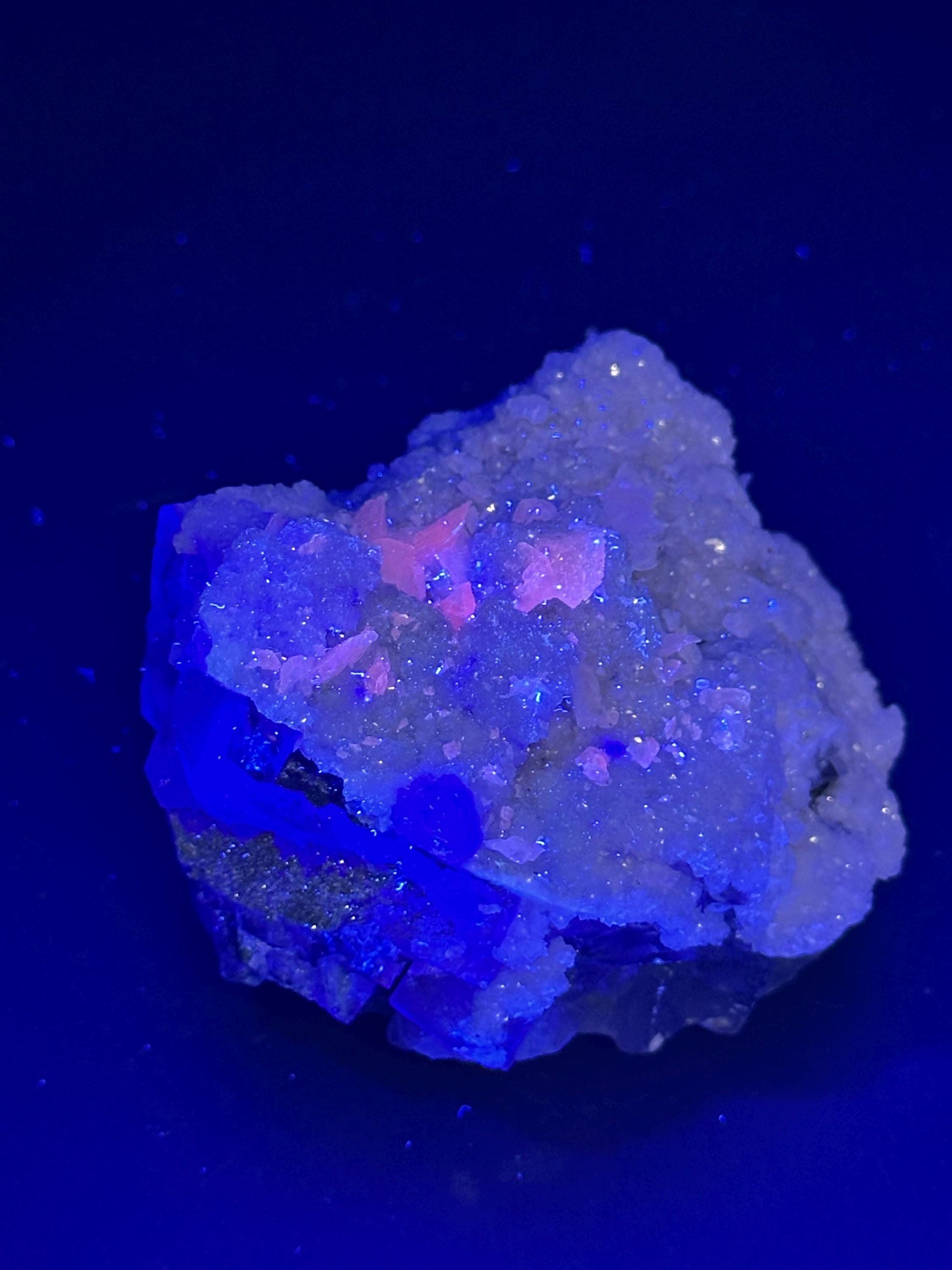 Lovely Fluorite with Quartz and Calcite from the Manaoshan Mine, Hunan, China. UV Reactive.