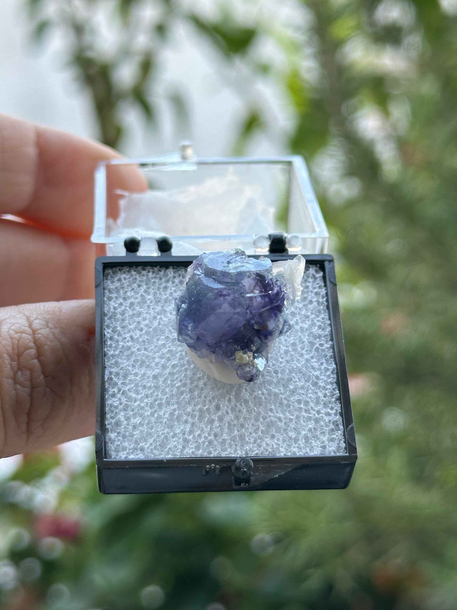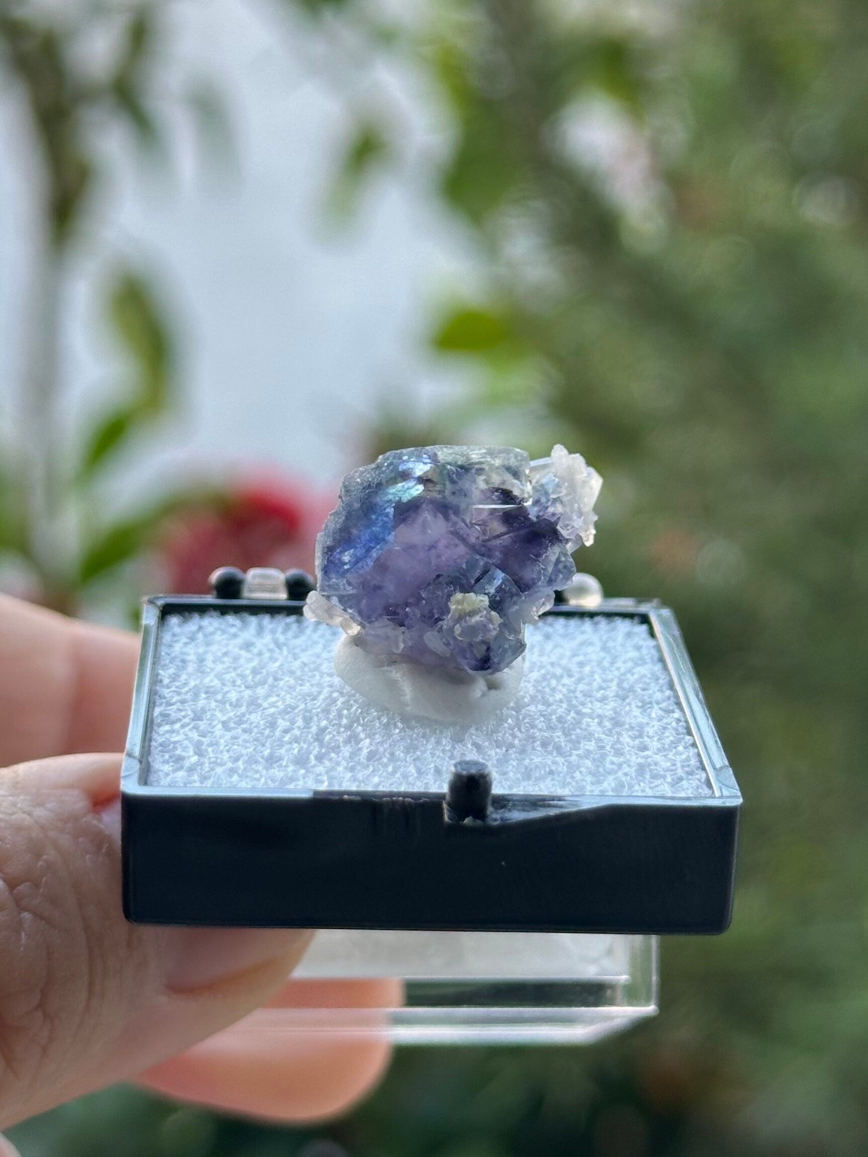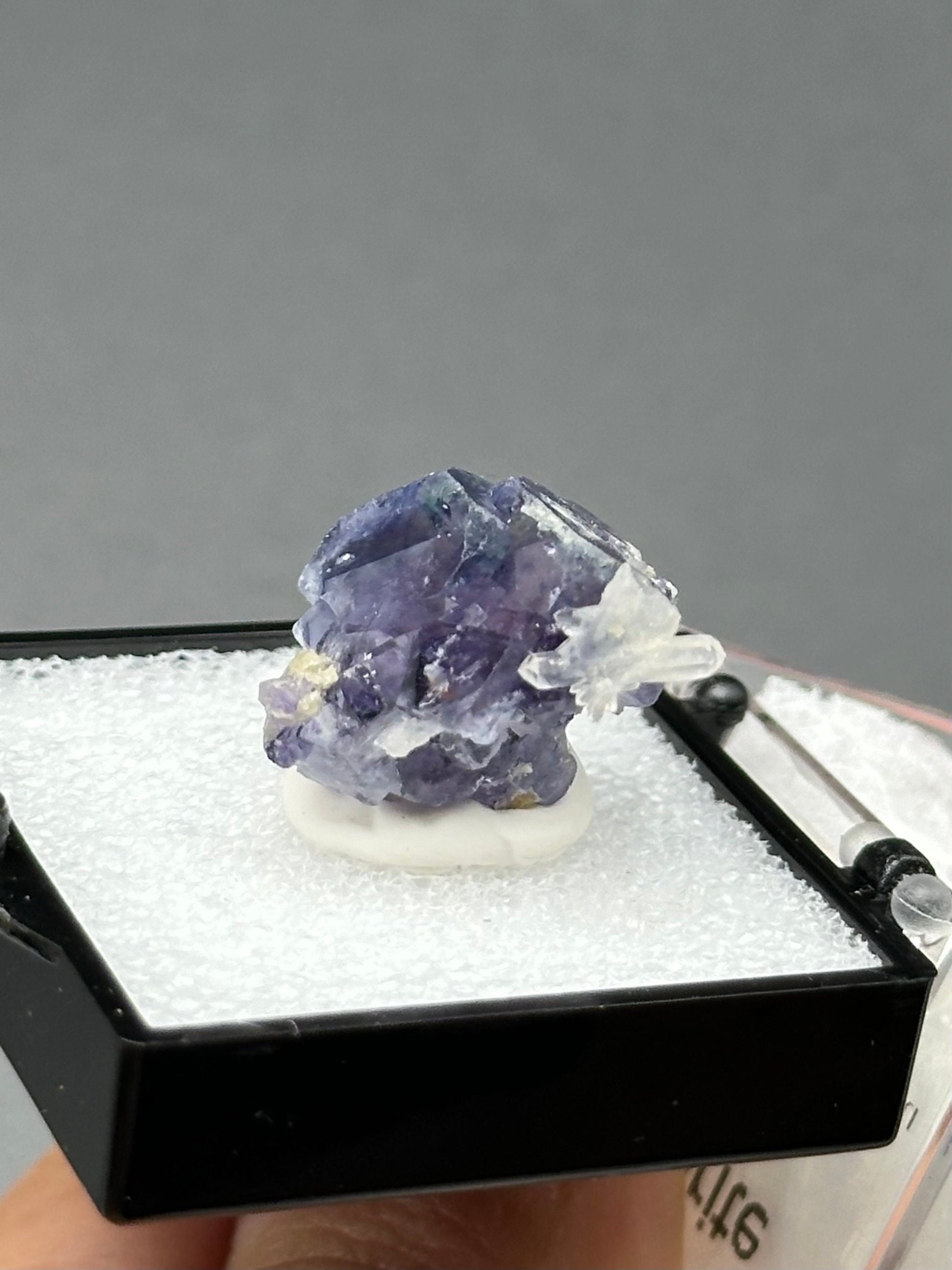 Lovely Small Fluorite with Quartz in a perky box from the Yindu Mine, Inner Mongolia, China.