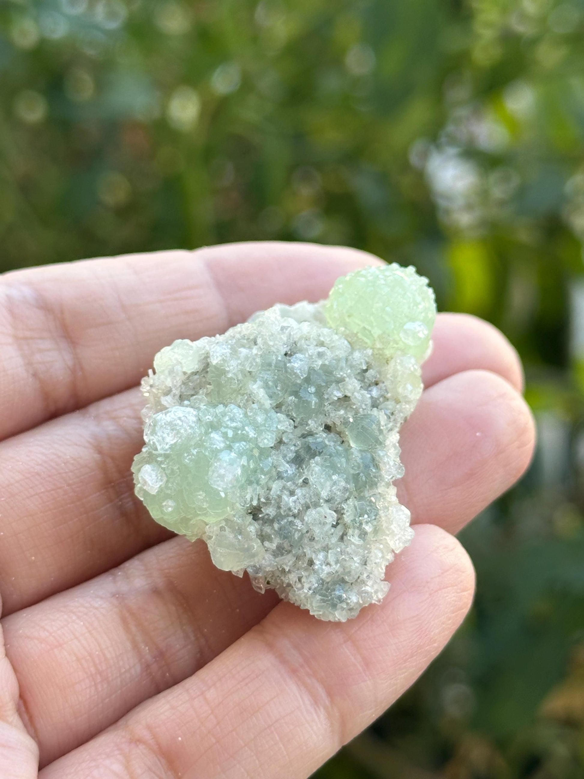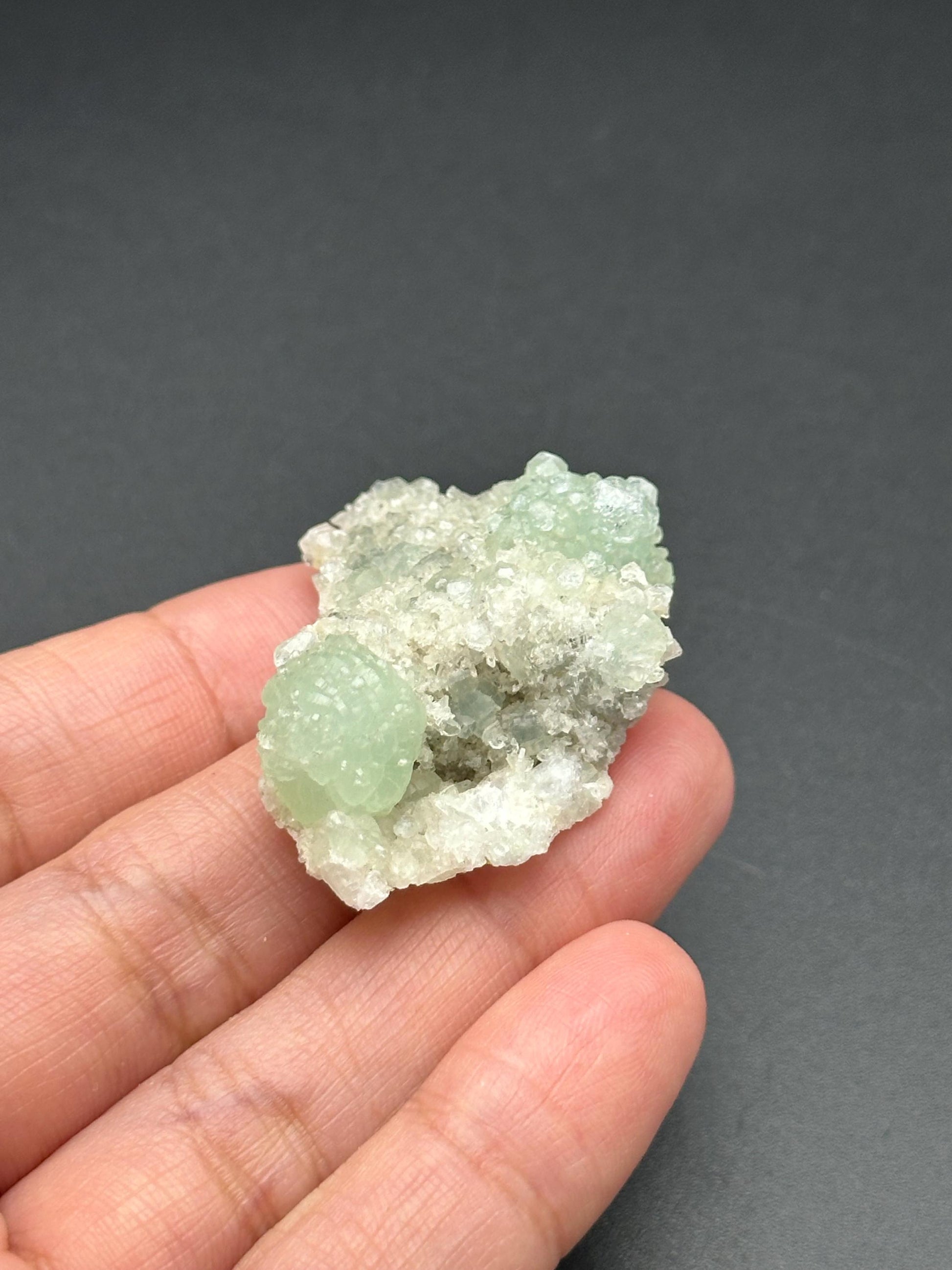 Lovely Small Prehnite and Quartz Specimen from the Goboboseb Mountains, Erongo Region, Namibia. 1.73"x0.6"x1.17", 0.8oz.