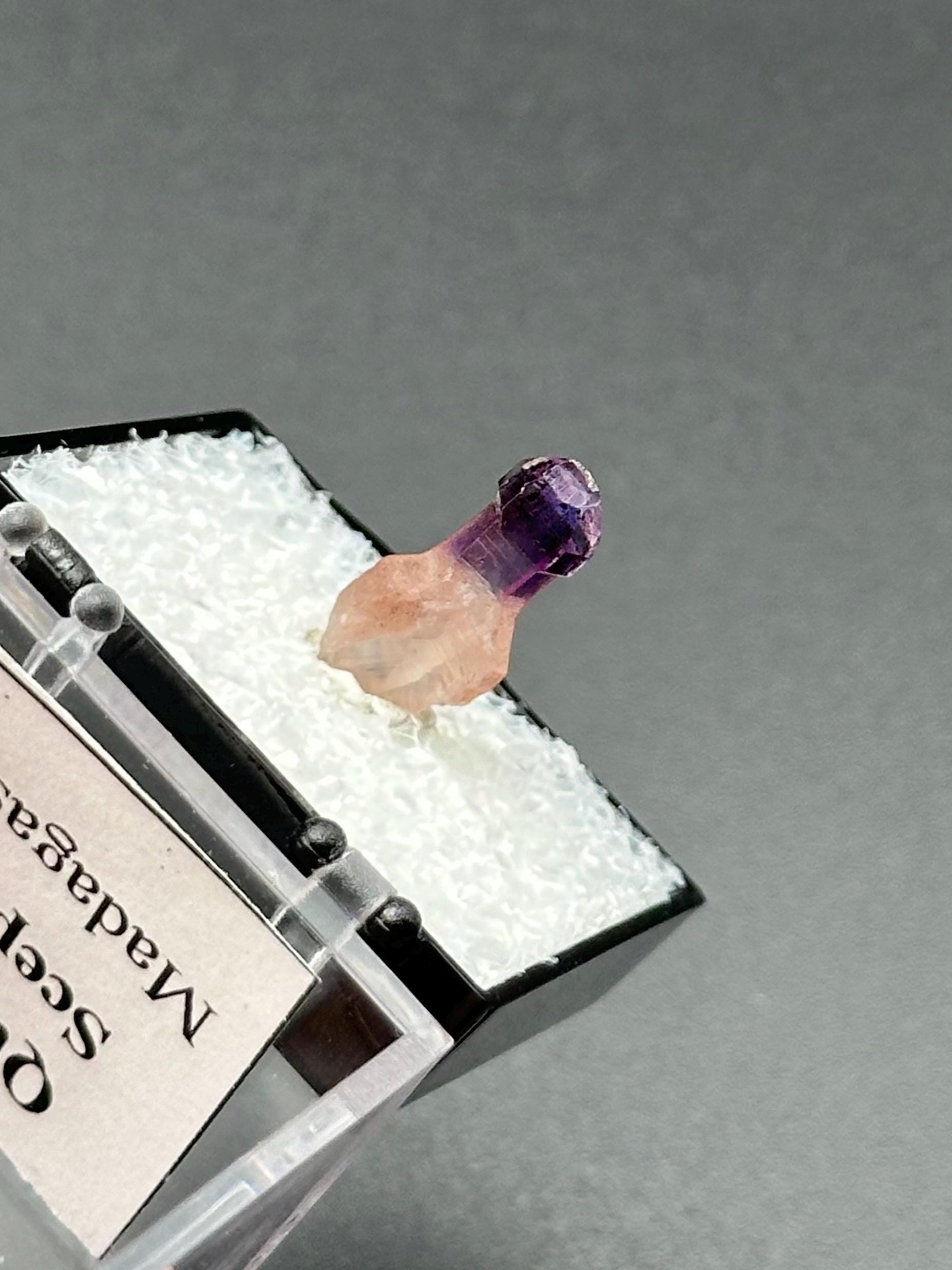 Lovely Quartz Scepter, in a perky box, from Madagascar. 7.7mmx1.65mmx6.1mm, 0.84g.