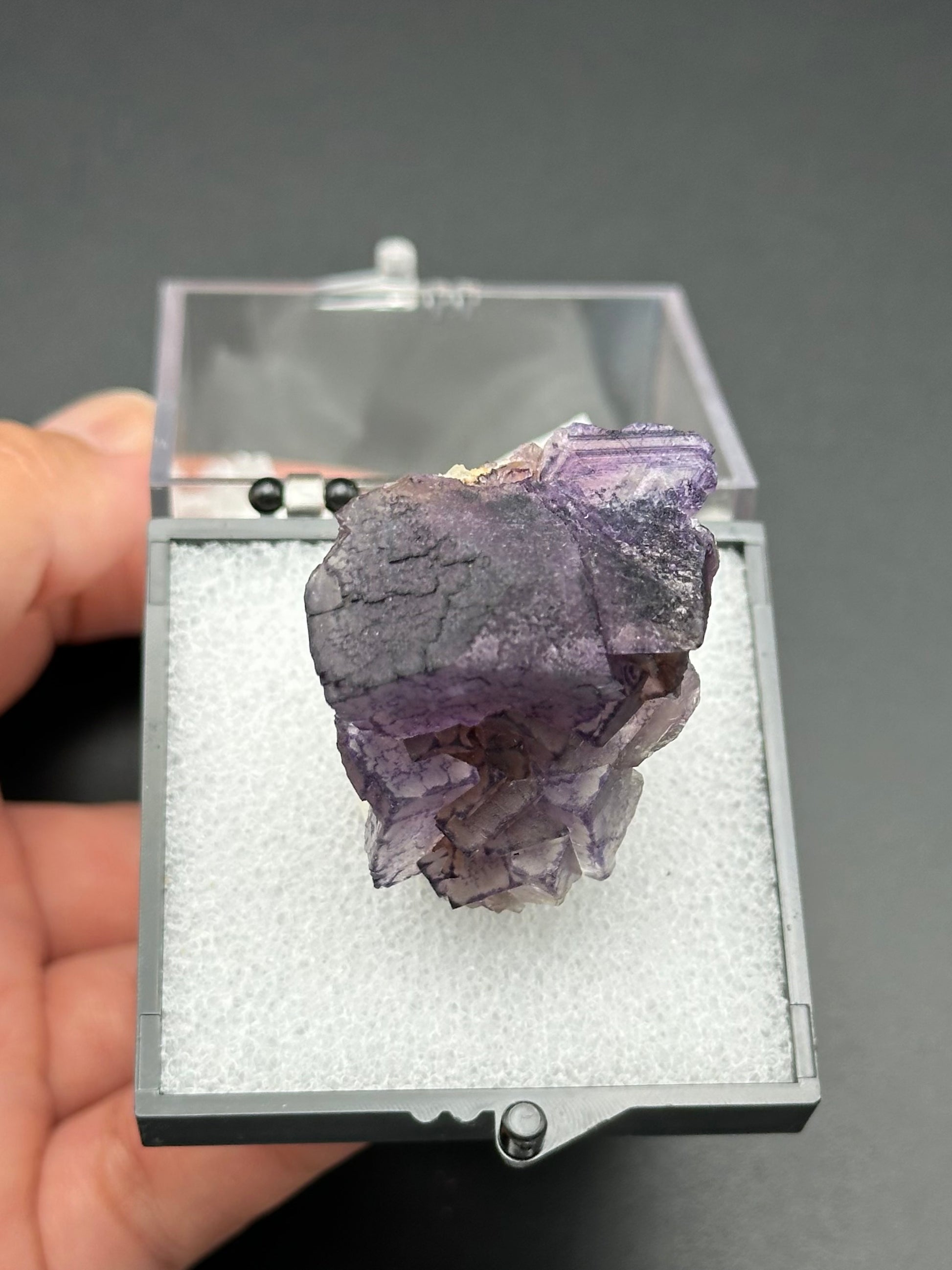 QR Code Fluorite Specimen in a perky box from the Quinlong Mine, Guizhou, China