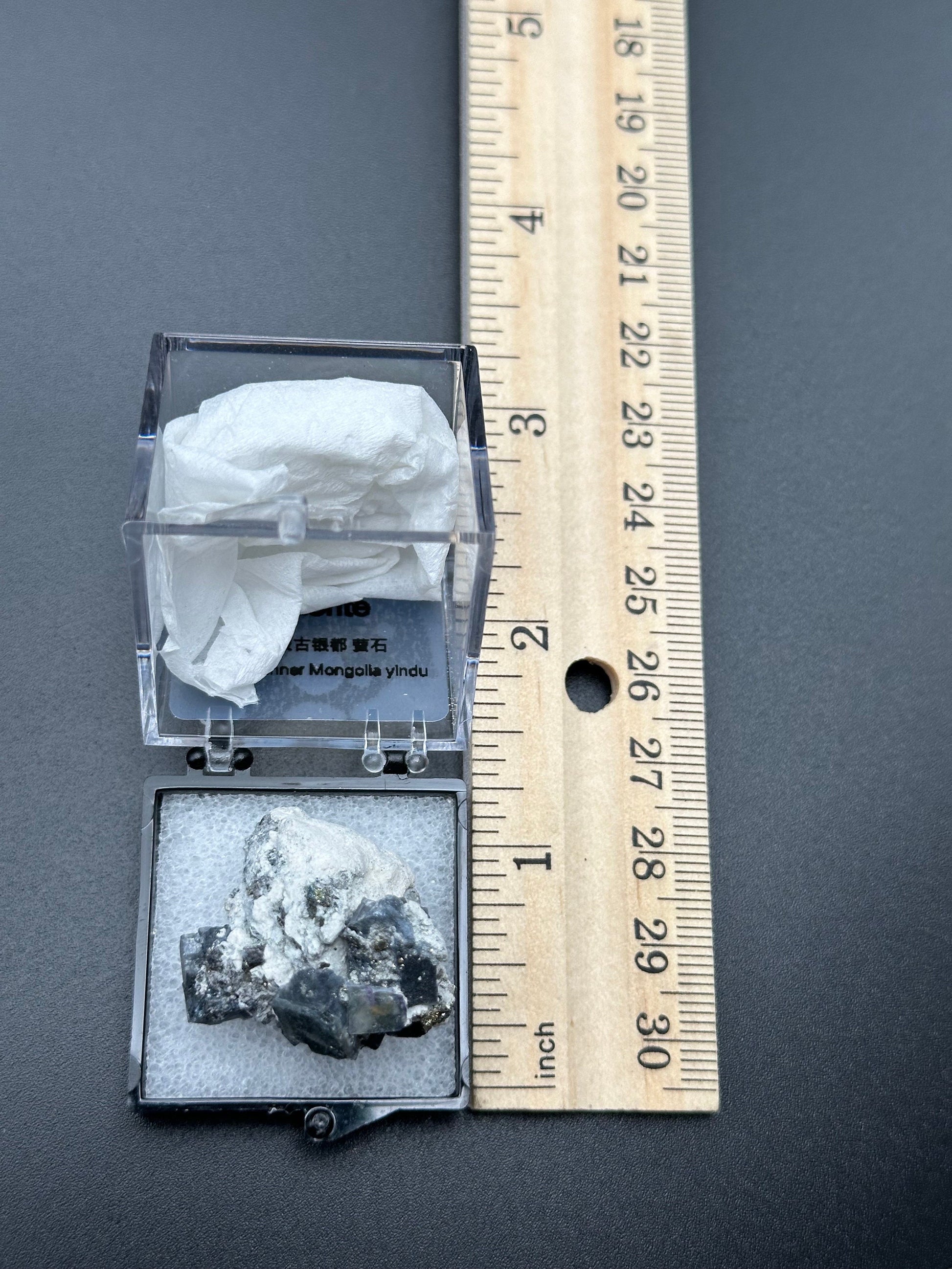 Stunning Yindu Fluorite with Pyrite on Matrix Specimen in a perky box from the Yindu Mine, Inner Mongolia, China. 28.3mmx20.8mmx24.4mm, 14.01g